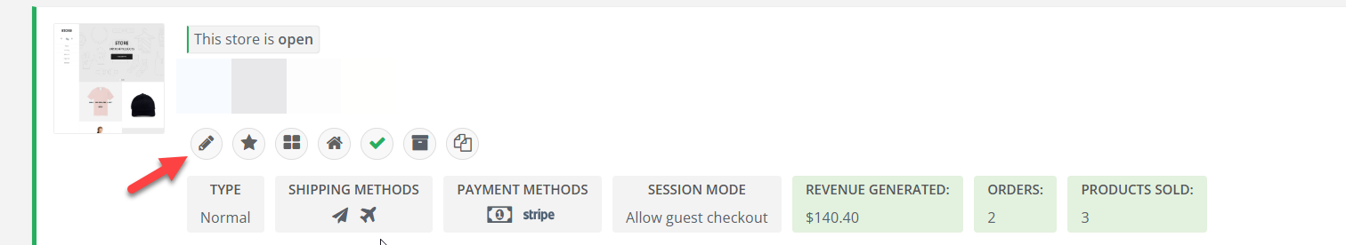 3.) Click the edit button (button with the pencil) to edit the store