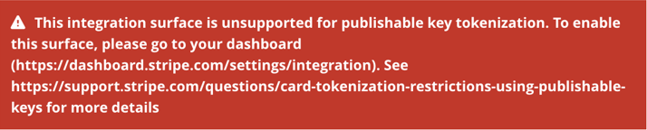 Stripe Error - This integration surface is unsupported for publishable key tokenization