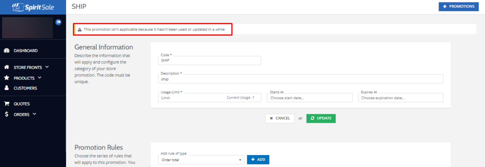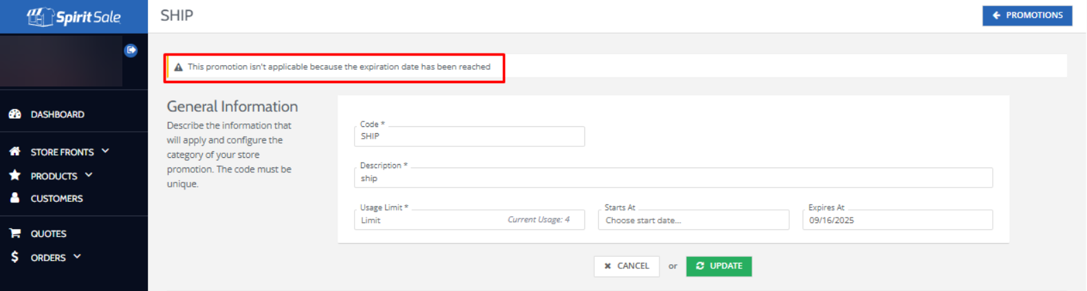 If a promotion code becomes inactive, you’ll see an information banner explaining why.